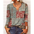 Katharina - Bunte Boheme-Bluse mit langen Ärmeln und V-Ausschnitt