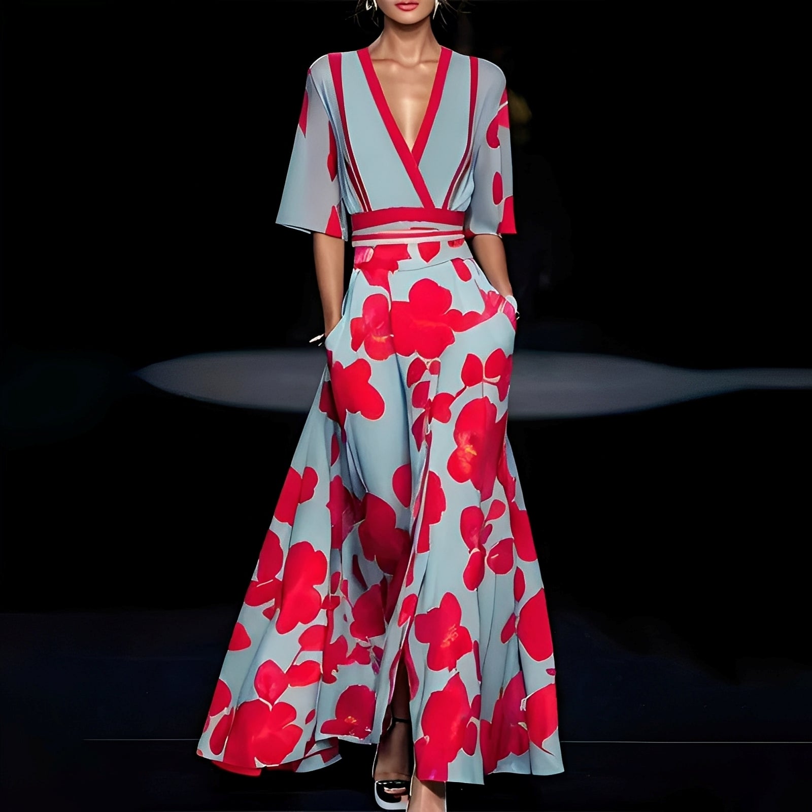 Débora - Vestido longo elegante com estampa floral para mulheres