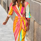 Géraldine - Vestido envelope elegante estampado para mulher