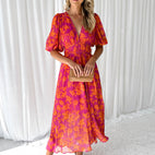 Liora – Vestido Floral com Decote V e Babados