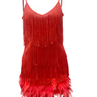 Mara - Um elegante vestido cocktail com detalhes de penas