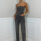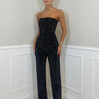 Selina – Macacão sem ombros – Entrada glamourosa com material brilhante