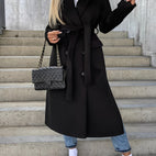 Suzanne - Casaco clássico de duas filas com cinto para mulheres